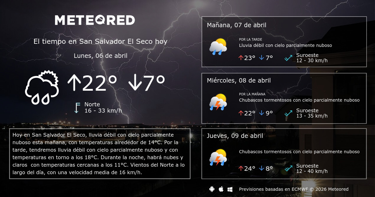 El Tiempo En San Salvador El Seco Prediccion A 14 Dias Meteored